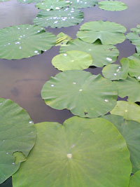 蓮の葉に、雨水が溜まって、とっても綺麗でした。
