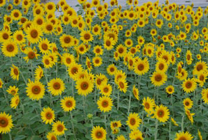 仕事で毎日走る道に、ひまわり畑がある・・・。