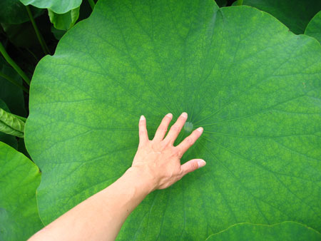 でかい蓮の葉!仕事中じゃなかったら、ひとつ頂いて帰りたい。
